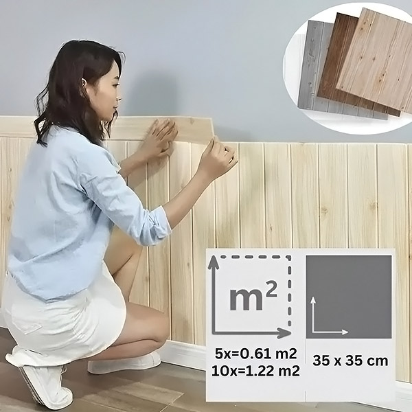 Svako pakiranje sadrži 5 komada (35 x 35 cm), koji pokrivaju 0,61 m². Prije početka izračunajte koliko će vam paketa trebati na temelju vašeg zida. Kupite više paketa za veće prostore i uživajte u popustima za volumen!