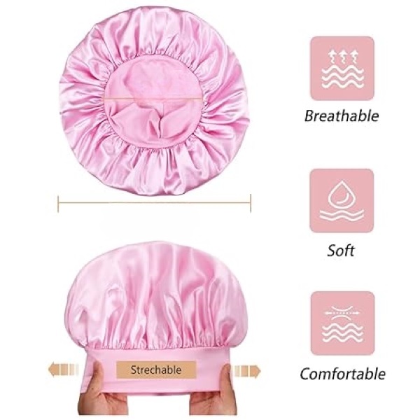Naša kapa ima široki rubni dizajn izrađen od vrhunske svilenkaste satenske tkanine, osiguravajući vrhunsku udobnost bez žrtvovanja stila. Široka traka dizajnirana je za rastezanje za personalizirano pristajanje, pružajući luksuznu i sigurnu zaštitu kose.