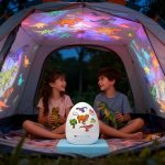 Uklonite sjenilo lampe kako biste otkrili projektor visoke rezolucije koji prikazuje zadivljujuće slike poput dinosaura, zvijezda i sirena, stvarajući čarobnu atmosferu.