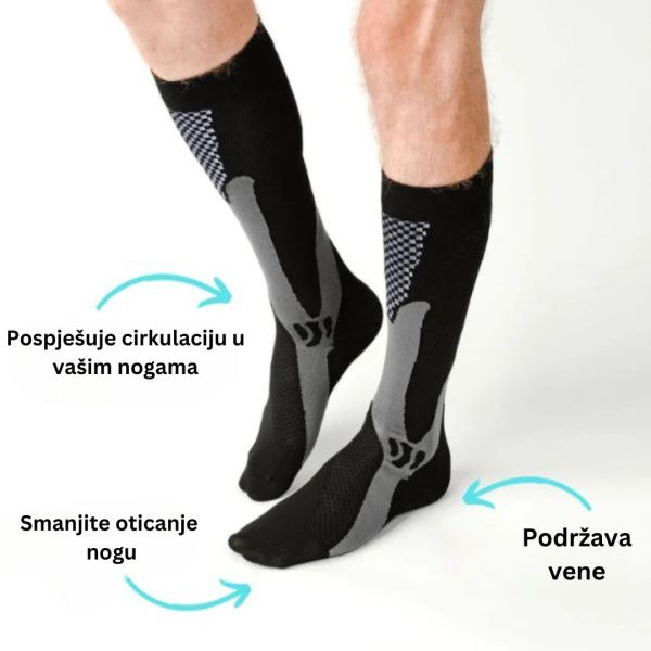 Ove čarape pomažu poboljšati protok krvi, što znači manje umora i više energije za vaš dan. Savršen za duge sate na nogama ili intenzivnu fizičku aktivnost.